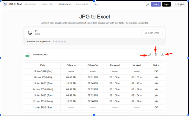 The tool quickly processes your image with the help of OCR (Optical Character Recognition) technology, and provides you with the extracted text in the form of an Excel file. Now, you can edit, copy, or download this Excel file according to your needs.