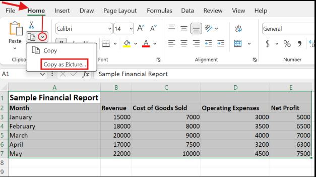 1. Using Excel’s Built-in “Copy as Picture” Feature