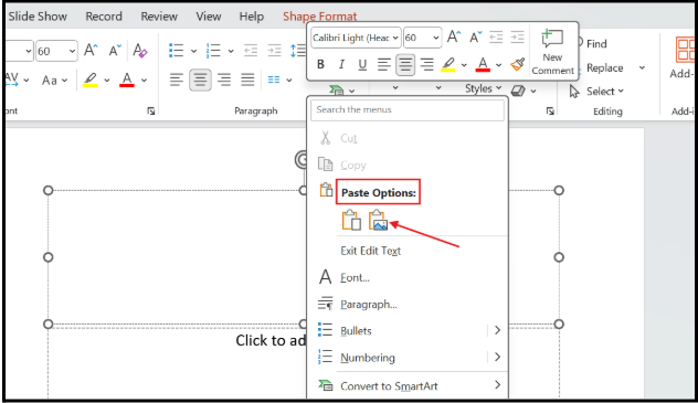 iv) Then, paste it into a suitable setting like PowerPoint as shown in the following screenshot.