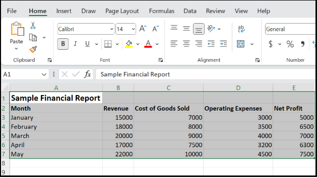 This method can be directly carried out in MS Excel. Microsoft offers a built-in Excel feature named “Copy as Picture”. It allows you to export selected data from a spreadsheet as an image while giving control over the quality. To correctly convert Excel to JPG using this method, follow these steps: