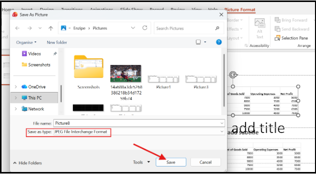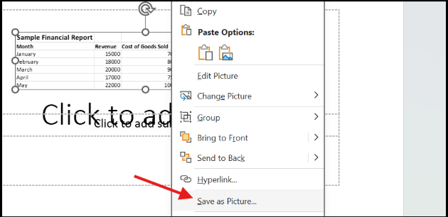 v) Once pasted into the PowerPoint, right-click on it and choose “Save as Picture”