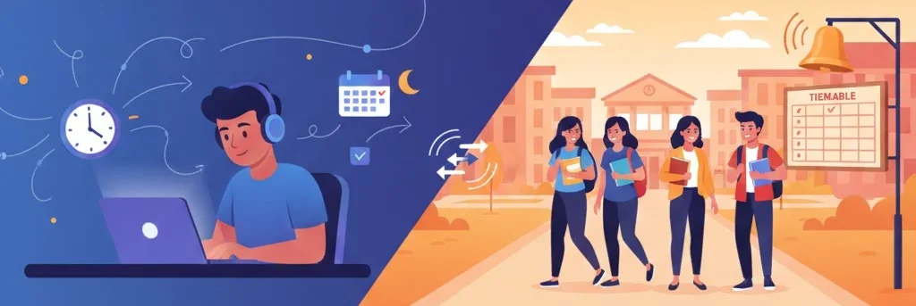 | Flexibility | High (Study anytime) | Low (Fixed timetable) |
