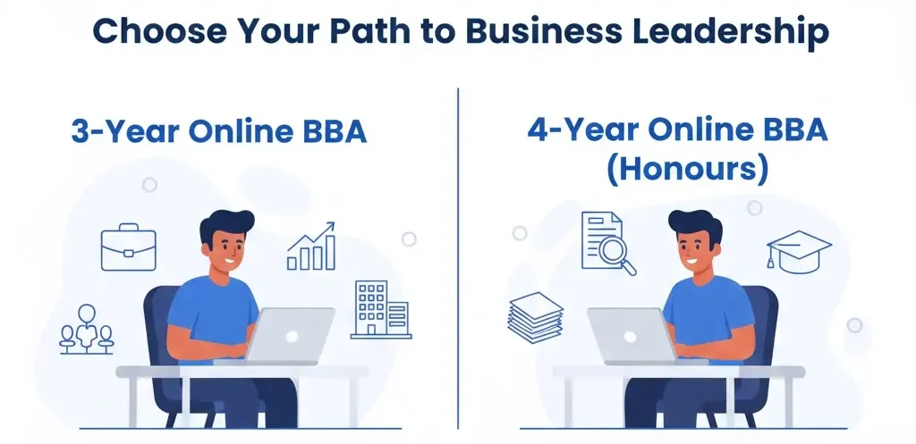 | Feature | 3-Year Online BBA | 4-Year Online BBA (Honours) |