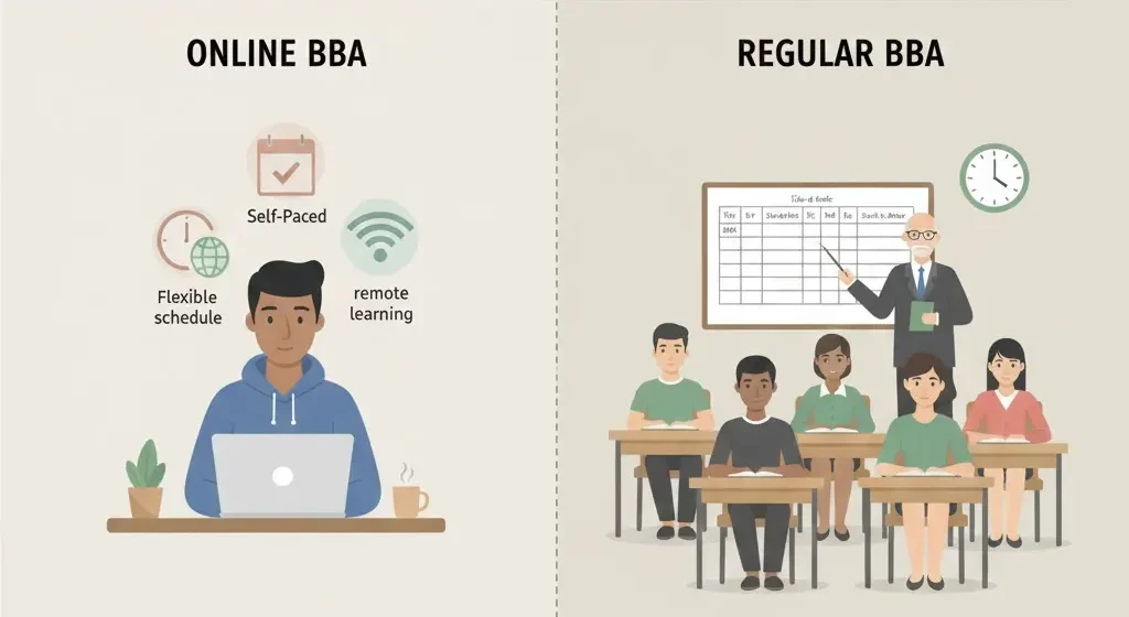 An online BBA (Bachelor of Business Administration) is a three-year undergraduate program delivered entirely via digital platforms. These degrees are regulated by the University Grants Commission (UGC) and the Distance Education Bureau (DEB). If you choose a recognized university, your online degree is legally equivalent to a regular campus degree. You will study subjects like Marketing, Finance, and Human Resources through live lectures and recorded videos.